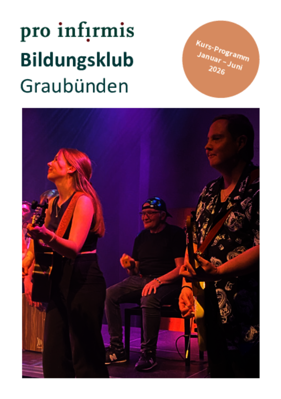 Zum Kursangebot Bildungsklub Graubünden: Anmeldung Kurse Januar bis Juni 2026Sie können auch in einem anderen Kanton Kurse besuchen.
